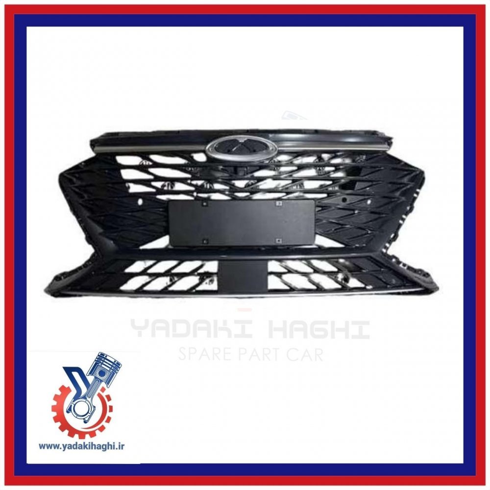نمونه اصلی جلو پنجره آریزو 8 دقیقاً مطابق قالب کارخانه ساخته شده و از نظر رنگ، ضخامت، محل قلابها و فاصله شبکهها کاملاً استاندارد است. این قطعه بخشی مهم از مجموعه لوازم یدکی آریزو 8 است.